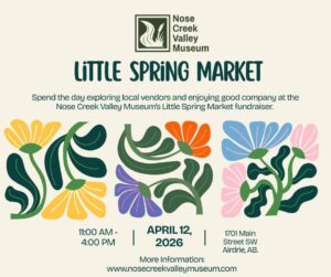 This weekend, I’ll be at the Little Spring Market, hosted by the Nose Creek Valley Museum at 1701 Main Street SW in Airdrie.